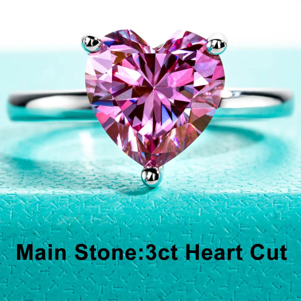 3CT Heart Cut Sakura Pink Moissanite Engagement Ring